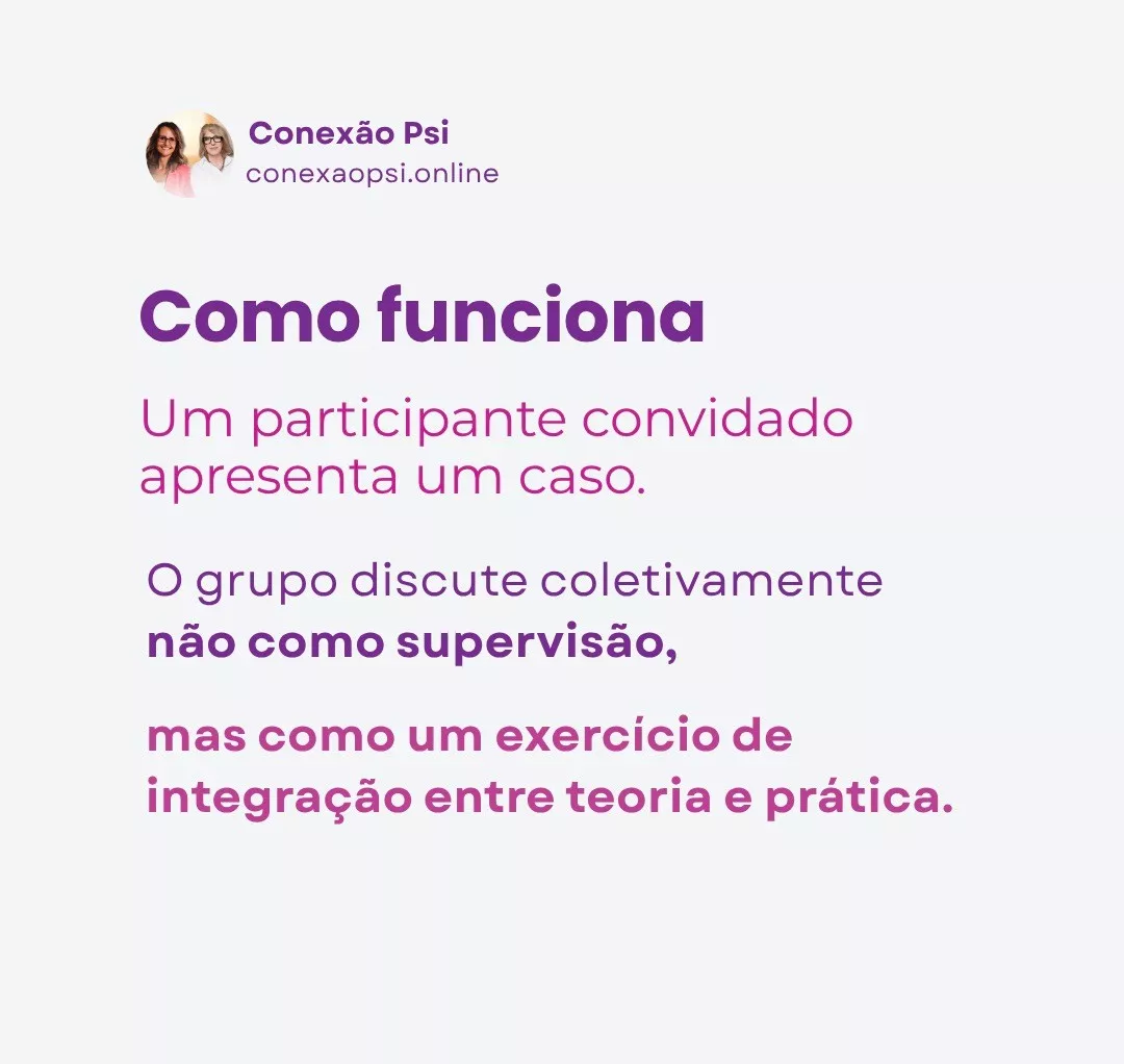 Este é um momento valioso para trocar experiências com colegas, construir conhecimentos e fortalecer a escuta clínica em um ambiente ético, de apoio e reflexão.